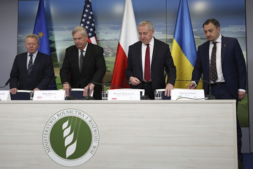 Польские и украинские власти подписали документ, позволяющий экспортировать украинское зерно через Польшу по железной дороге и автомобильным транспортом, заявил министр сельского хозяйства и развития сельской местности Польши Хенрик Ковальчик. Как сообщил польский министр, в ходе встречи в понедельник в Варшаве был подписан соответствующий протокол о