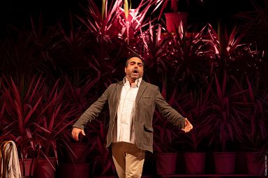 "Сокращения были сделаны в целях сохранения повествования. В жертву были принесены в основном те части, где есть хор, потому что опера в сокращенном варианте также должна быть приемлемой по стоимости ", - объясняет Терранова. "Мы перенесли на сцену повествование об опере, чтобы увлечь, возможно, отвлеченную публику. Я думаю о молодых людях, которые сидят в социальных сетях. Так что мы можем сказать им: "Эй, ребята, у нас тут есть кое-что замечательное, что вы просто обязаны знать"".